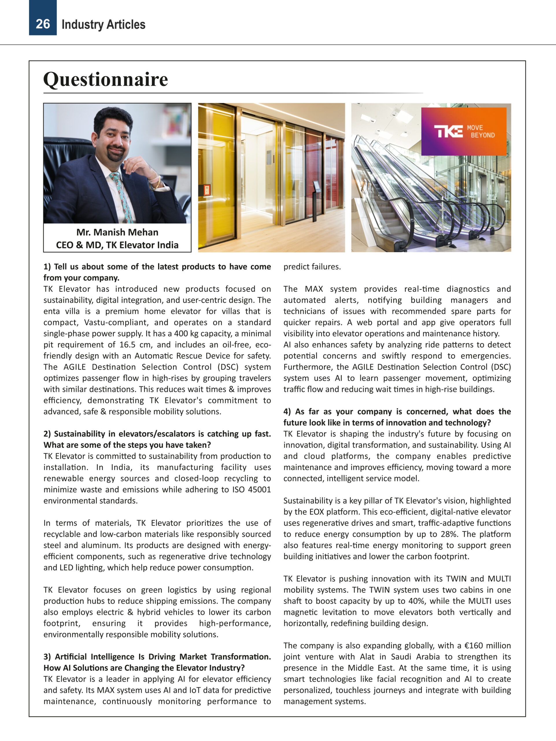 Tell us about some of the latest products to have come from your company. TK Elevator has