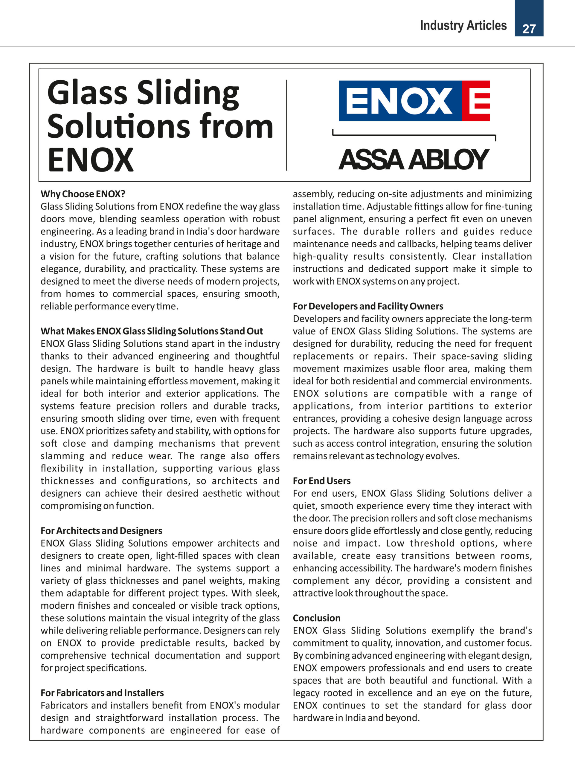 Glass Sliding Solutions from ENOX – Why Choose Enox? Glass Sliding Solution from ENOX redefine the